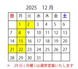 (日曜) は臨時休業につき、元旦〜6連休となります